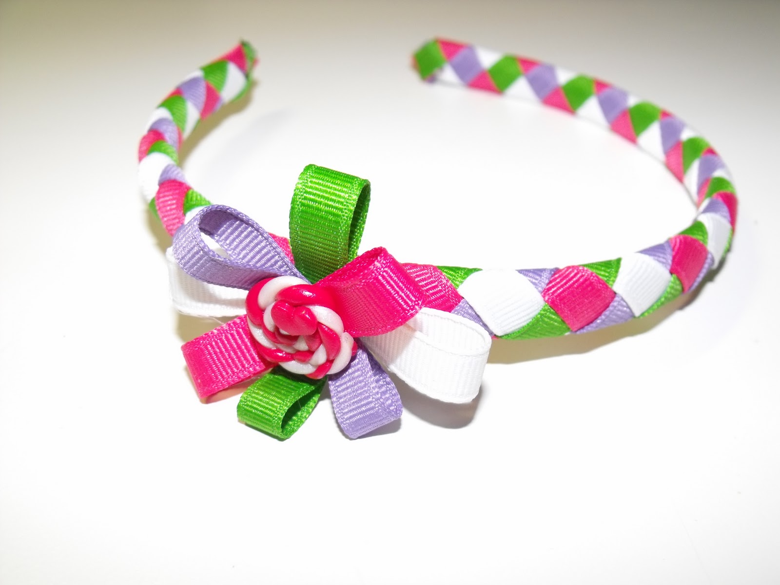 Quello in foto è a 4 colori, ma li realizzo anche a 1, 2 o 3 colori. L’ho completato con un fiocco negli stessi colori e un chiudifiocco a lecca-lecca in pasta sintetica. Ora sto facendone altri che si abbinino alle fantasie dei vestiti di Sofia, in previsione dell’arrivo della primavera.