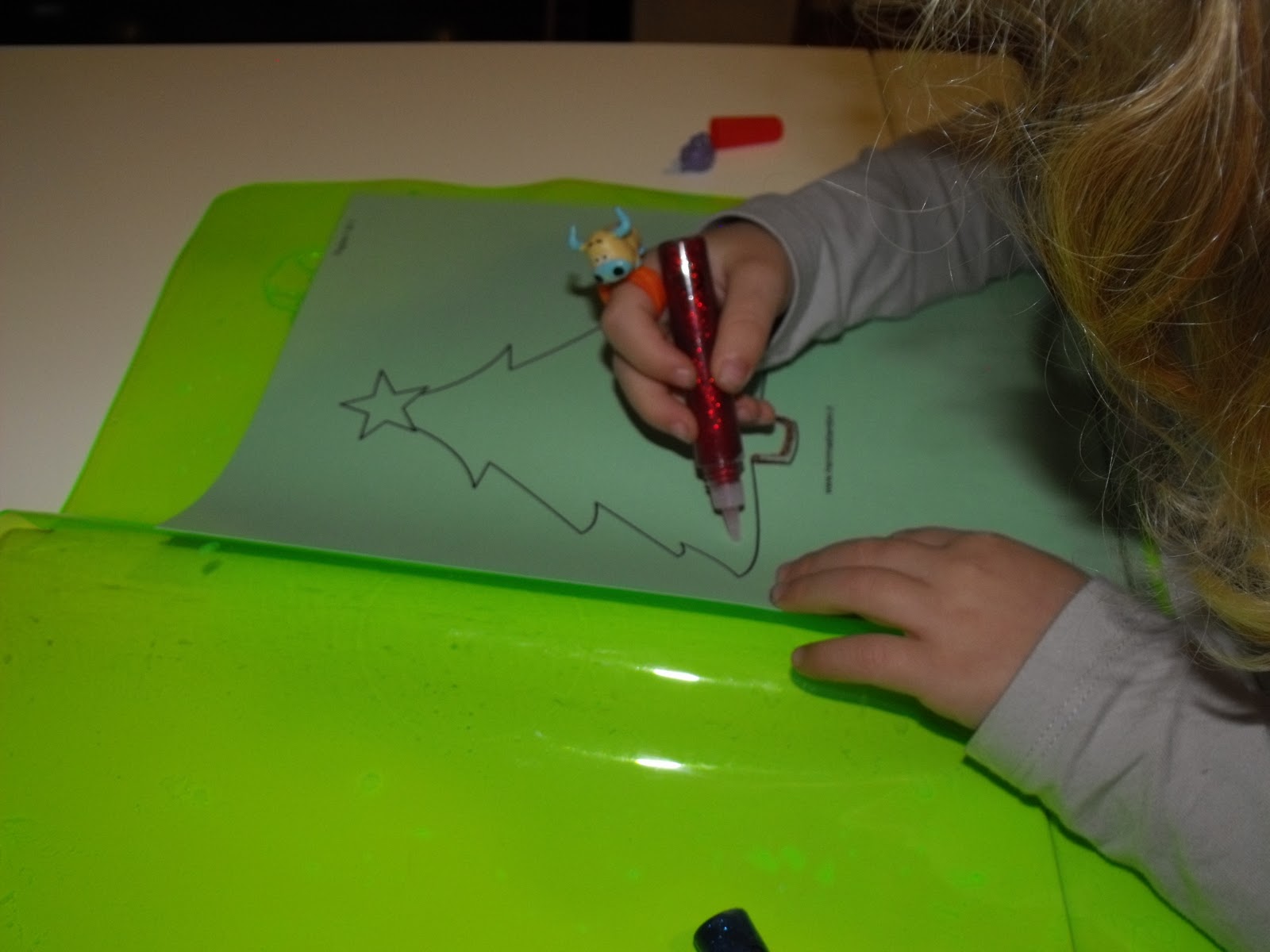 Hanno incollato con la colla glitter le palline e decorato l’albero come volevano.