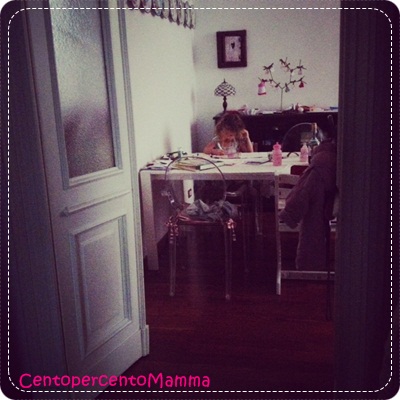 Dopo aver colorato per qualche ora sabato pomeriggio, Sofia domenica mattina si è alzata e… si è rimessa al lavoro! Ecco come l’ho trovata al mio risveglio: